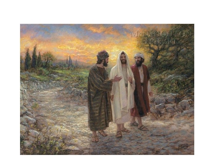 • Luke 24: 13 -35 New International Version (NIV) • On the Road to Emmaus • 13 Now that same day two of them were going to a village called Emmaus, about seven miles[a] from Jerusalem. 14 They were talking with each other about everything that had happened. 15 As they talked and discussed these things with each other, Jesus himself came up and walked along with them; 16 but they were kept from recognizing him. • 17 He asked them, “What are you discussing together as you walk along? ” • They stood still, their faces downcast. 18 One of them, named Cleopas, asked him, “Are you the only one visiting Jerusalem who does not know the things that have happened there in these days? ” • 19 “What things? ” he asked.