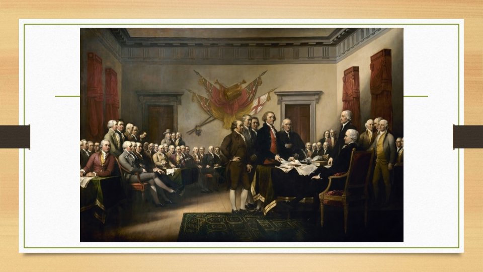 The Signers • 56 signers • Included: Benjamin Franklin, John Adams, John Hancock, Samuel Adams, Thomas Jefferson • All of the signers were wealthy, successful colonists • By signing this document, they were putting their lives and the lives of their families at risk “We must all hang together, or assuredly we shall hang separately. ” – Benjamin Franklin