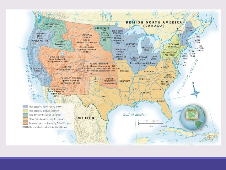 Compromise of 1850 • Result of Mexican-American War • 5 part compromise o California o Slave trade abolished in DC o “Popular sovereignty” o Texas-NM border o Fugitive Slave Act of 1850
