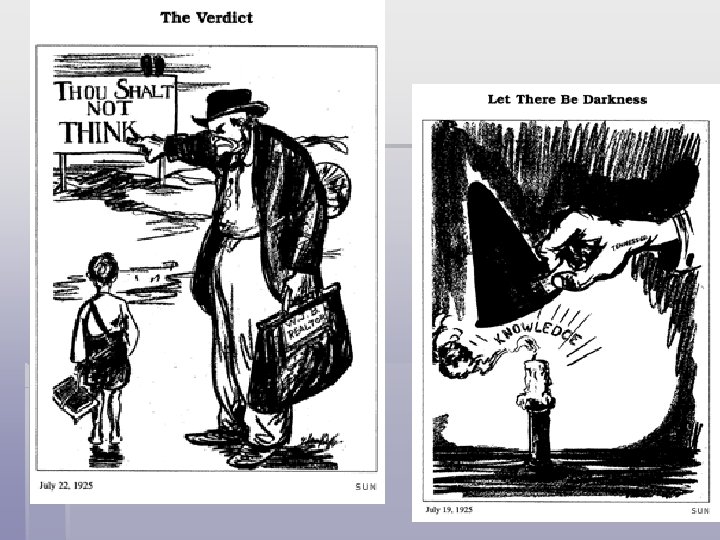 Fundamentalism vs Modernism § Many states pass laws forbidding teaching of Evolution § Dayton Tenn. Biology teacher John Scopes volunteers to get arrested for breaking law