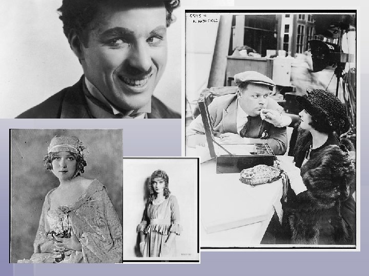 Movies § § § Invented by Edison First movie with plot The Great Train Robbery 1903 First full length motion picture The Birth of a Nation First talkie The Jazz Singer New industry created in Hollywood Stars: Charlie Chaplin, Clara Bow, Lillian Gish, Mary Pickford, Buster Keaton, Fatty Arbuckle
