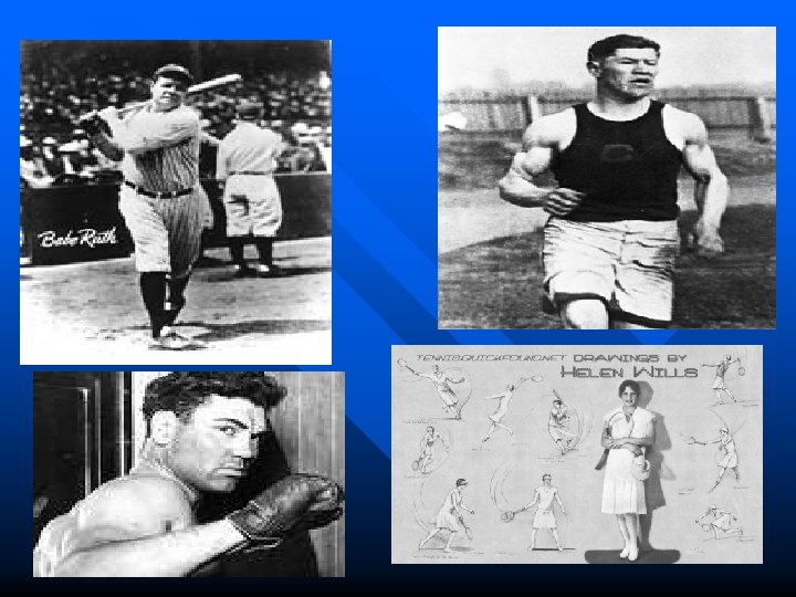 Sports Heroes n n Jack Dempsey – Heavy Champion of the World Jim Thorpe – Native American – Olympic gold, Professional football and baseball player n George Herman Ruth – set home run record with 60 home runs n Hazel Wightman & Helen Wills – Olympic and Wimbledon tennis starts