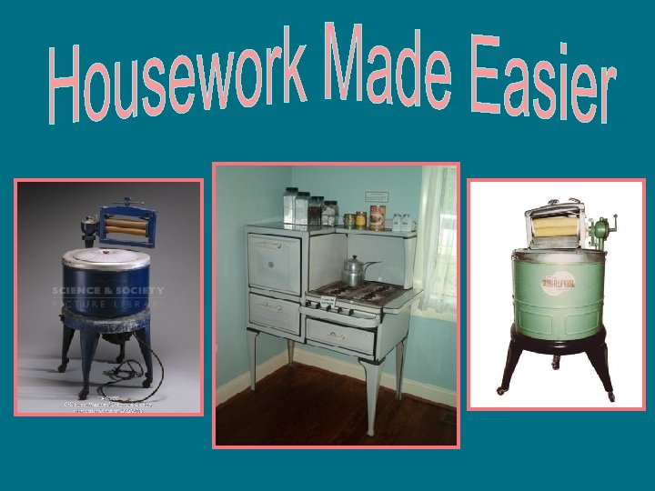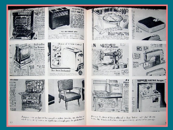 New Electric Gadgets Available to the American Consumer • Radios • Toasters • Vacuum cleaners • Sewing machines • Refrigerators • Coffee pots • Ovens • Irons