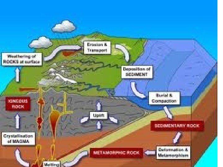 The rock cycle is driven by… � Earth’s internal and external heat engines (continuously)