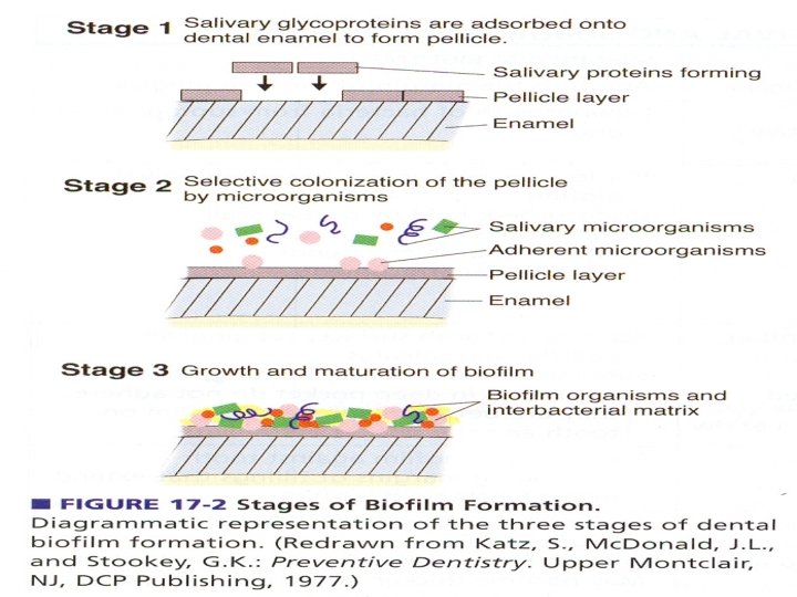 Stages in the formation of dental plaque. Dental plaque is formed in three basic steps: Pellicle formation Bacterial colonization Plaque maturation