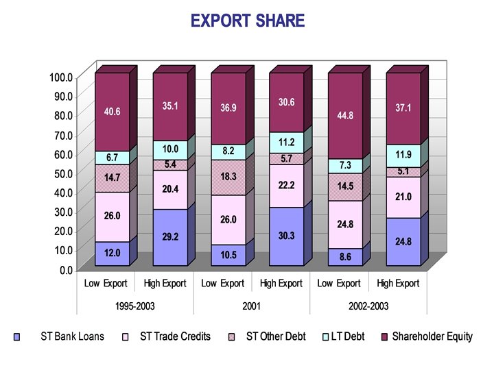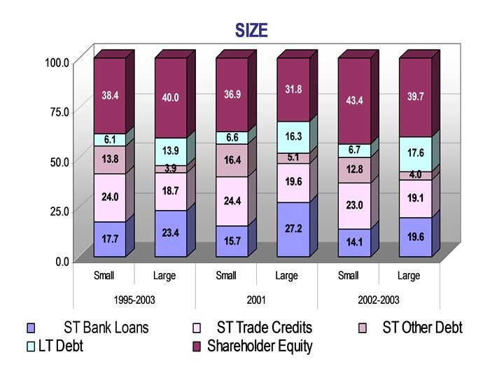 FINANCIAL STRUCTURE IN TURKEY: STYLIZED FACTS ü The finance choice of firms classified according to different firm groups for 1995 -2003 period are given in details in Figures (based on 2 thousand manufacturing firms that report regularly).