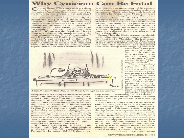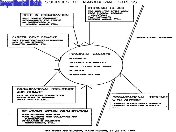 “Cooper and Marshall Model” “Who is liable for stress on the job? ” “Any company, unless it learn to monitor, diagnose and treat a stressful situation before it goes to court. —and document these activities. ”