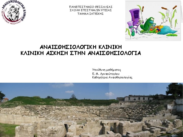 The Role of the Anesthesiologist from Surgical Anesthesia to Critical Care Medicine and Pain Medicine Arnaoutoglou E Professor of Anesthesiology University of Thessaly
