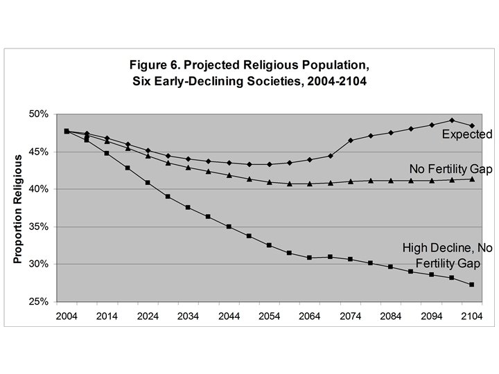 Conclusion: Demographic Trends • Conservative religion growing fastest in Israel/diaspora (change within a decade), major change by 2050 • In the US and Europe, the change will take place slowly, over generations (major change after 2050) • Muslim world: more like US/Europe. Conservative advantage should grow with modernization • Driven by demography and retention