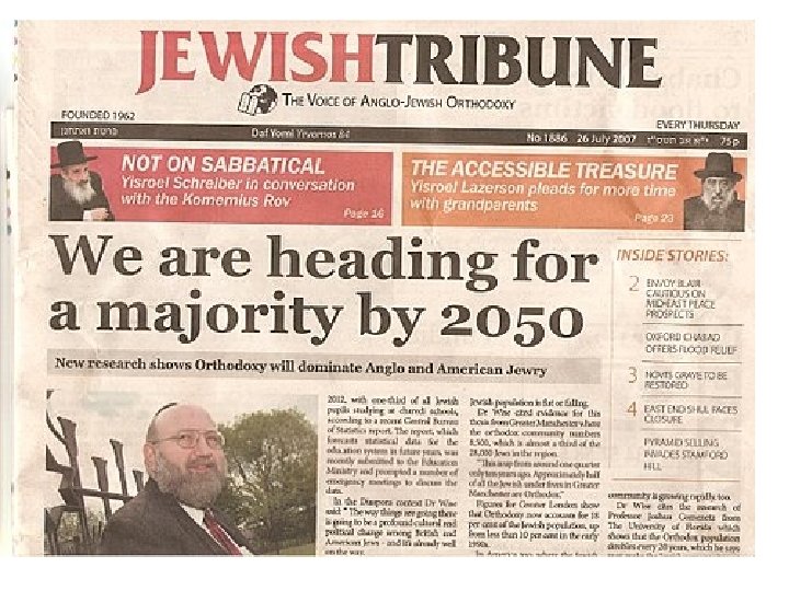 • UK: A Tale of Two Cities: Salford v Leeds • US: – American Jews have TFR of 1. 43. In 2000 -6 alone, Haredim increase from 7. 2 to 9. 4 pc of total. – Kiryas Joel, in Orange Co. , New York, nearly triples in population to 18000 between 1990 and 2006