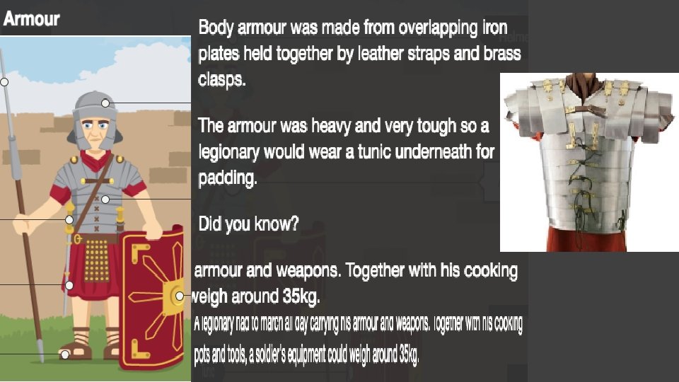 The army was very advanced for its time. The soldiers were the best trained, they had the best weapons and the best armor. Being a soldier was a serious business. When the Romans invaded Britain, their army was so good that it took on armies 10 times its size and won!