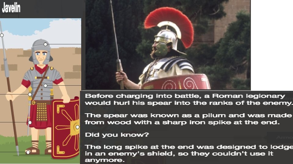 Roman soldiers usually lined up for battle in a tight formation. After a terrifying burst of arrows and artillery, the Roman soldiers marched at a slow steady pace towards the enemy. At the last minute, they hurled their javelins and drew their swords, before charging into the enemy. Then they used cavalry (soldiers riding horses) to chase anyone who tried to run away.