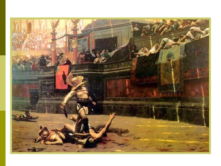 Colosseum p p p Exotic animals hunts, gladiatorial combat, executions, brutal plays, battle recreations and possibly naval battles with alligators entertained the crowds Christians martyred still debated Used as a social valve to control populace