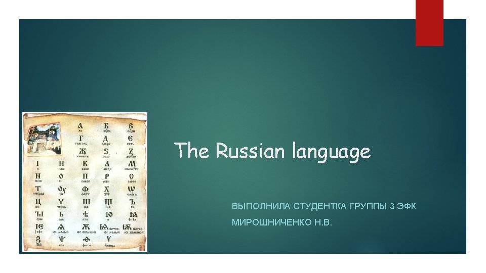 The feature of Russian is that it uses Cyrillic. So the Russian alphabet consists of 33 letters. It contains 10 vowels and 23 consonants.