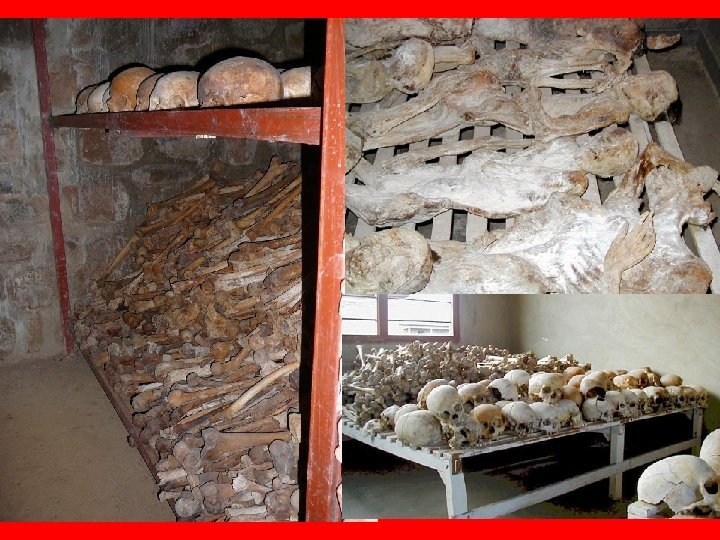 The Killings • Killed in their villages or in towns, often by their neighbors and fellow villagers • Militia members typically murdered their victims by hacking them with machetes, although some army units used rifles • The victims were often hiding in churches and school buildings, where Hutu gangs massacred them • Ordinary citizens were called on by local officials and government-sponsored radio to kill their neighbors and those who refused to kill were often killed themselves • Everyone killed so they weren’t killed themselves: – Mayors – Priests – EVERYONE