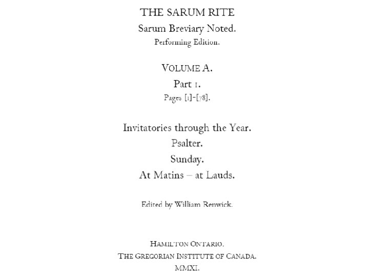 The Sarum Chant Project : Past Present Future. . . sarum-chant. ca