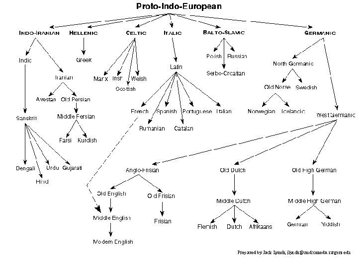 • Etymologies • Law of (exceptionless) sound change: sounds change in mechanical ways over time. • The discovery of Indo-European