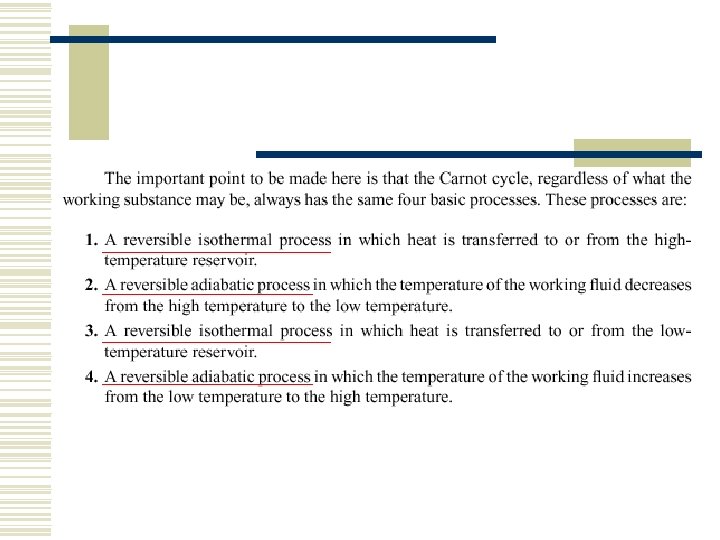 7. 2 THE SECOND LAW OF THERMODYNAMICS w Two classical statements of the second law n n Kelvin–Planck statement Clausius statement.