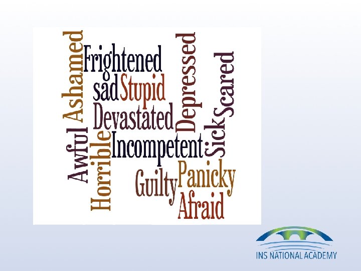Reactions to making an infusion error • “… so scared. . I thought my pt was not going to tolerate the dose. . . I was reluctant to report the incident bc I was afraid I was going to lose my job. . . My CNL was very supportive and reassured that was the best thing to do. ” • “Guilty! Afraid to report I felt awful, and scared, and was just so grateful the patient was okay. ” • “I felt terrible, but I quickly let my preceptor (I was in orientation then) know. ” • “. . one of the whoas of nursing that makes you stop and reground yourself from becoming so task oriented and in robot mode. However, it makes you feel so incompetent and like you are unable to provide simplicities of care. ”