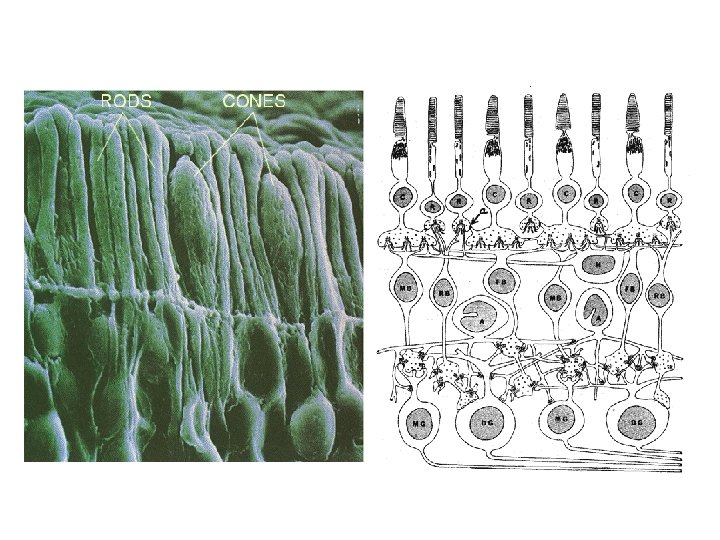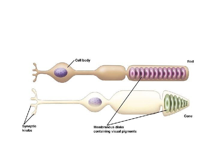 Photorecptors • Found in eyes • Sensitive to light – Cones are sensitive to colour – Rods are sensitive to the intensity of light