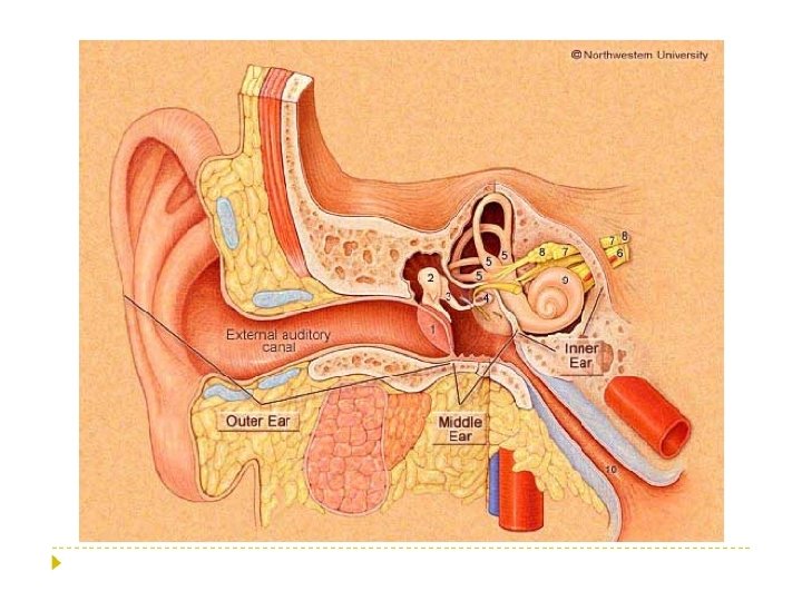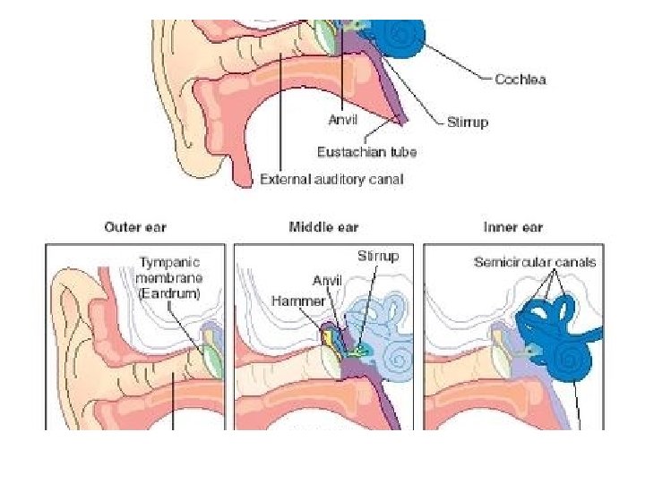 • The ear is the receptor organ of sound 3 parts: • Outer ear • Middle ear • Inner ear