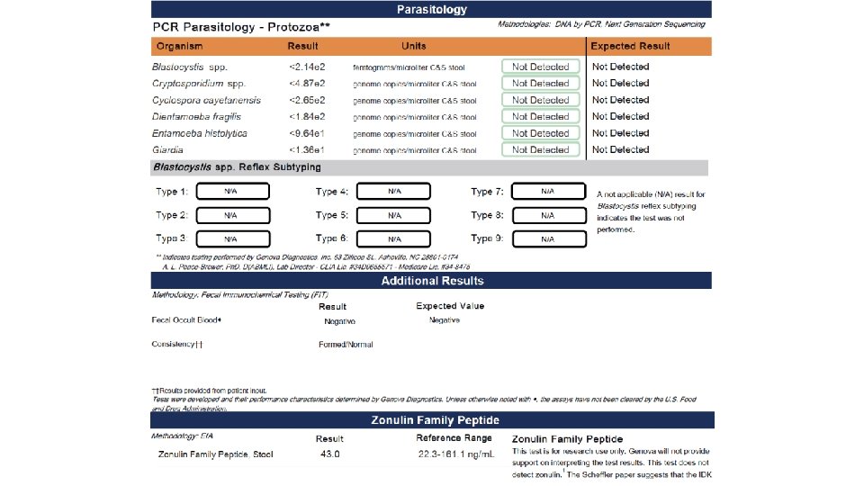 Yeast eradication • Yeast thrives on sugar. Just stop feeding it! • Probiotics: Saccharomyces boulardii, Lactobacilli, Bifidobacter • Enzymes: amylase, peptidase, lipase. • Oregano, thyme, garlic, goldenseal • Nystatin, fluconazole, amphotericin B, ketoconazole, terbinafine, itraconazole. Consider parasite testing and eradication. Patrick Hanaway, Treating Dysbiosis: Weed, Seed, and Feed, IFM GI AFP, Oct 2018.