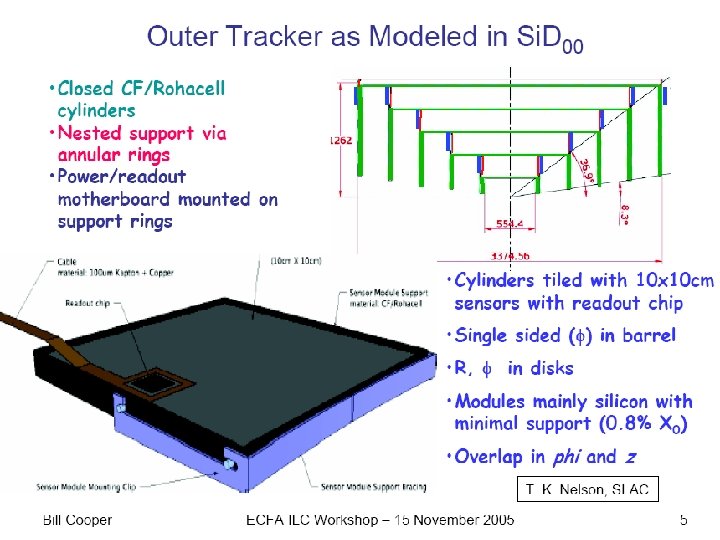 Si tracking components in a detector with central TPC e TPC um vol Silicon Envelope surrounding TPC How it compares with Si. D tracker? 4 Si tracking components in detector concept with TPC internal and external Si tracking components in barrel and large angle (forward/end caps) regions, acting as intermediate trackers and forming a complete coverage Si tracking system Si. D: all Si-tracker
