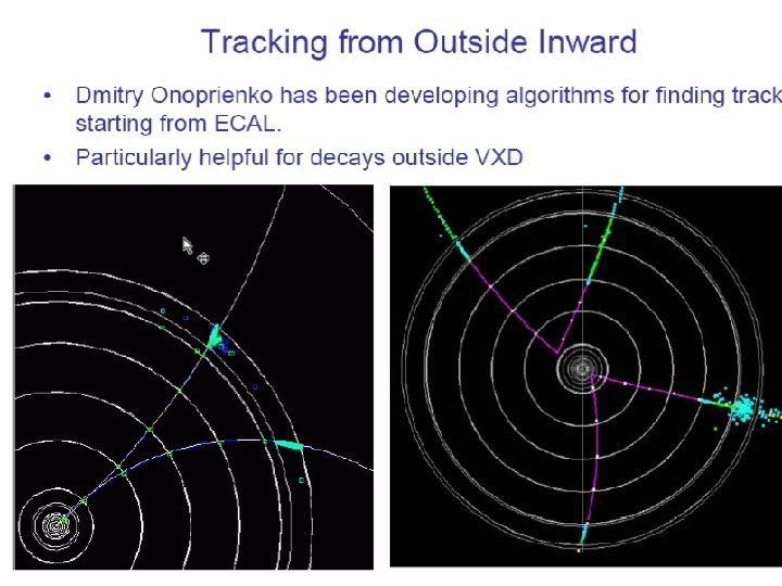 Higgs event in the Si. D detector design, using MOKKA G 4 framework Si. D detector included in geometry DB (V. Saveliev) A lot of work performed with fast but enough detailed simulation (SGV): See talk by M. Berggren @Vienna But dramatically lacking a full reconstruction program in the G 4 framework for complete detector concept studies. Agreement @ Si. LC meeting-Vienna to make a WW effort for Si tracking G 4 reconstruction (meeting Dec 15 th)