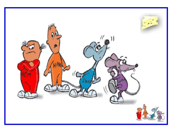 • The mice, Sniff and Scurry, possessing only simple rodent brains, but good instincts, searched for the hard nibbling cheese they liked, as mice often do. They used the simple, but inefficient, trial-and-error method of finding cheese. They ran down one corridor and if it proved empty, they turned and ran down another. • The two little people, Hem and Haw, used their brains, filled with many beliefs, to search for a very different kind of Cheese-with a capital C-which they believed would make them feel happy and successful.