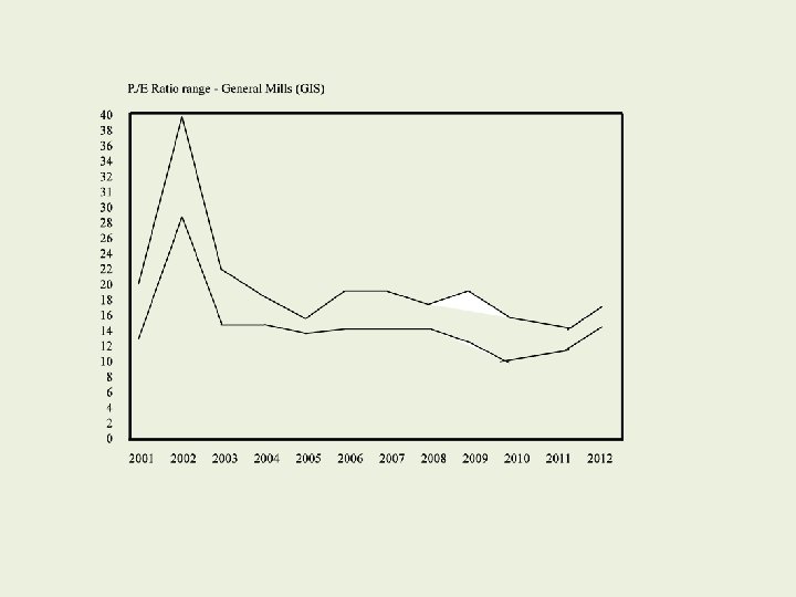 Solutions to the P/E problem The P/E cannot be reliably used as a singular value at the moment. However, volatility of the stock can be judged by a review of the range of annual P/E and its trend. A consistent level of P/E in a narrow range is a positive indicator. For example, General Mills has reported a narrow P/E over many years.
