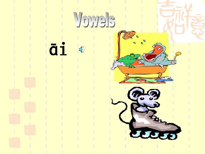 When you have learnt how to pronounce these vowels individually, you can try to read out some combined vowels. I will read out the following groups of vowels in the first tone.