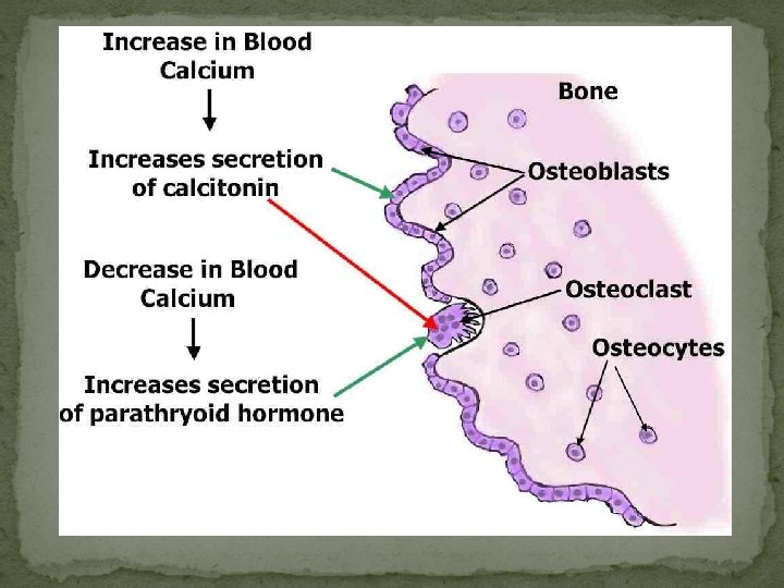 Calcium Homeostasis �Bone is body’s main reservoir for calcium (stores 99% of total body Ca) �Normal blood level Ca 9 -11 mg/100 m. L �Calcium important for: �Muscle contraction �Nerve impulses �Blood clotting �Many enzymes require Ca++ as cofactor