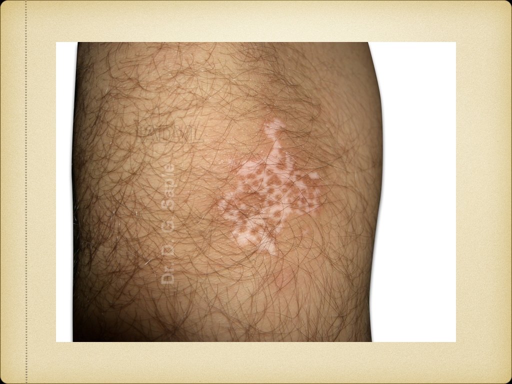 Course of disease & prognosis Unpredictable course and slow progression Poor prognostic factors 1. Lesions on resistant sites 2. Long duration 3. Family history 4. Leucotrichia 5. Old age 6. Associated autoimmune diseases 7. Injudicious use of photo chemotherapy