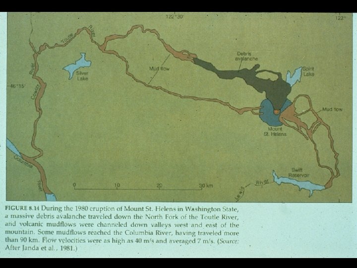 Unconsolidated pyroclastic deposits on the north face of Mt. St. Helens were also a major source of lahar flows that inundated river drainages flowing from the volcano.
