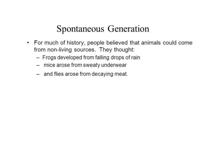 • At the time of Francesco Redi it was believed that rotting meat gave rise to maggots.