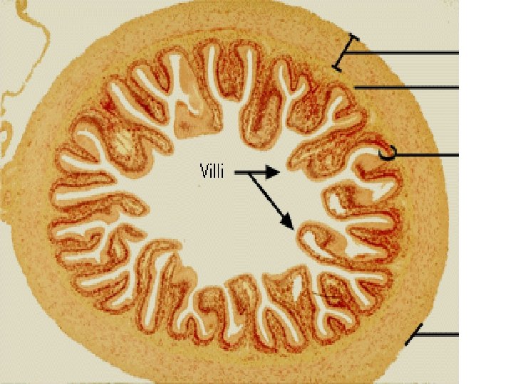 The Small Intestine • All the nutrients from digestion are absorbed by the small intestine • The surface of the small intestine is covered in villi The Villi • Villi increase the surface area of the small intestine. This means that more nutrients can be absorbed and faster.