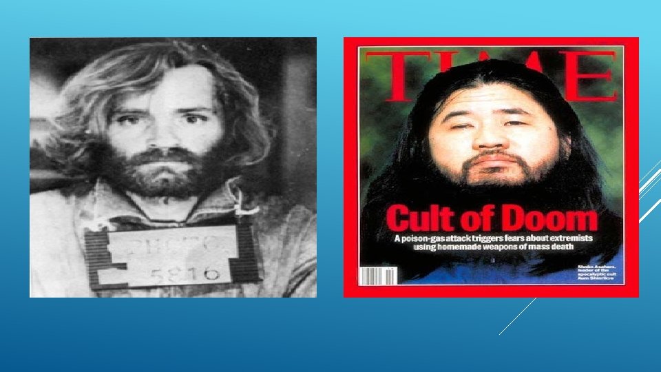 (2) Dangerous/Destructive Cults - these are groups that plan and carry out violent acts against their own members and/or innocent members of society. Their actions may or may not be tied to some kind of "end of the world" prophecy -- similar in that way to doomsday cults. The two labels can be interchangeable. For example, The Manson Family attempted to help their leader bring about "Helter Skelter" -- a race war that would ultimately lead to Manson becoming the leader of the world. To get this started, Manson ordered them to murder innocent people. The followers of the Japanese group Aum Shinikyro released deadly sarin gas into the Tokyo subway system in 1992. I would call these groups "dangerous. "
