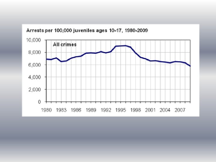 Other Considerations • Death penalty for juveniles was discontinued in 2005 (Roper v. Simmons) • Severe offenses (i. e. murder, gangrelated acts) are treated as “adult crimes” in 44 states; the lower age limit is generally 14 years of age