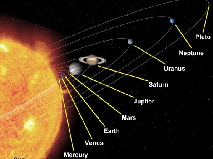 The inner planets vs. the outer planets • The inner planets: Mercury, Venus, Earth, and Mars. They are relatively small, composed mostly of rock, and have few or no moons. • The outer planets: Jupiter, Saturn, Uranus, Neptune, and Pluto. They are huge, mostly gaseous, ringed, and have many moons The exception is Pluto, the dwarf planet, which is small, rocky, and has one large moon plus two tiny ones.