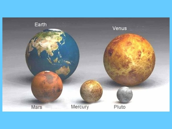 MERCURY VENUS EARTH MARS 3031 mi 7512 mi 7926 mi 4221 mi MASS 5% of Earth 95% of Earth 1. 3 x 1025 pounds 11% of Earth AV. TEMP. 800 o F 900 o F 56 o F - 20 o F ATMOSPH ERE Very thin ROTATION 58 days 96% CO 2 Dense* 243 days 79% N 2 20% O 2 24 hrs 95% CO 2 2. 7% N 2 24 hrs ORBIT 88 days 225 days 365 days 687 days DIAMETER * Surface pressure on Venus is 90 atmospheres.