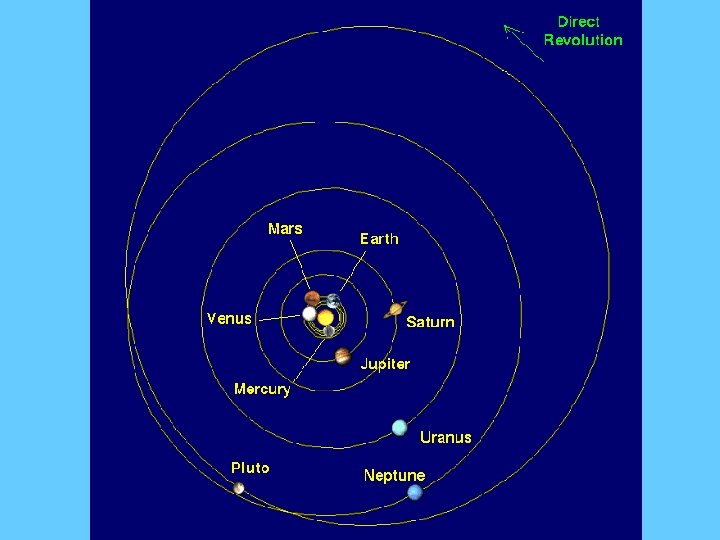 Planet Distance x 106 km Distance in AU Period to Revolve Around Sun Mercury 57. 91 0. 4 88 days Venus 108. 21 0. 7 224. 7 days Earth 149. 6 1. 0 365 days Mars 227. 92 1. 5 687 days Jupiter 778. 57 5. 0 11. 75 yrs Saturn 1433. 53 10 29. 5 yrs Uranus 2872. 46 20 84 yrs Neptune 4495. 06 30 165 yrs