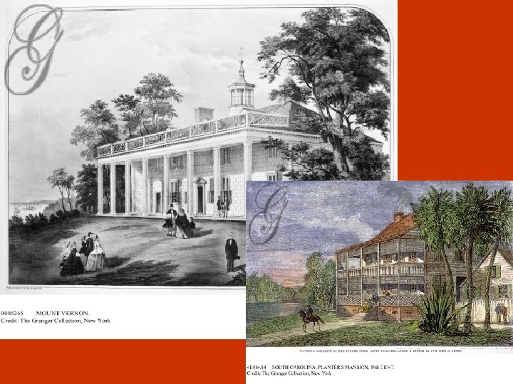 Plantation Life • The colonies in the North (Virginia, Maryland parts of North Carolina) became the major tobacco and rice producing areas. • Slaves did most of the work in the fields. Some slaves were skilled workers such as carpenters or blacksmiths. Other slaves worked as cooks and housekeepers. • Only a few southerners owned large plantations. Planters set the style of life in the south. The planter lived in an elegant home with a parlor and guestrooms.