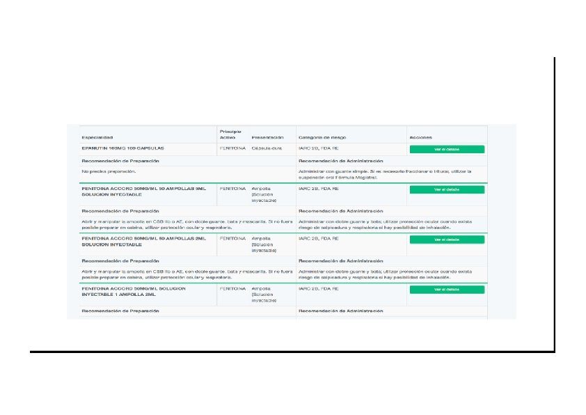 Medicamentos peligrosos GRUPO 2 AMPOLLA Apomorfina Fenitoina ANILLO VAGINAL Estrógenos/progesterona OTROS FORMATOS Progesterona BOLSA Zidovudina CÁPSULA Ciclosporina Fenitoina Lenalidomina Micofenolato de mofetilo Tacrolimus COMPRIMIDO Abacavir Azatioprina Carbamazepina Entecavir Espironolactona Micofenolato de mofetilo Micofenolato sodico Oxcarbazepina Paliperidona Risperidona FRASCO Abacavir Micofenolato de mofetilo Nevirapina Valganciclovir Zidovudina GEL Estradiol JERINGA PRECARGADA Apomorfina Risperidona PLUMA PRECARGADA Apomorfína PARCHE Estradiol Estrógenos/progesterona VIAL Azatioprina Cidofovir Dexrazoxano Ganciclovir Medroxiprogesterona Palifermina Carcinogenicidad Teratogenicidad u otra toxidad para el desarrollo - Toxicidad reproductiva - Toxicidad en órganos a bajas dosis - Genotoxicidad - Nuevos medicamentos con perfiles de estructura y toxicidad similar a medicamentos existentes que se determinaron como peligrosos según criterios anteriores -