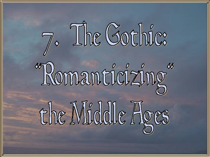 Characteristics of Romanticism Revival of Past Styles: § Gothic & Romanesque revival. § “Neo-Gothic” architectural style. § Medieval ruins were a favorite theme for art and poetry.