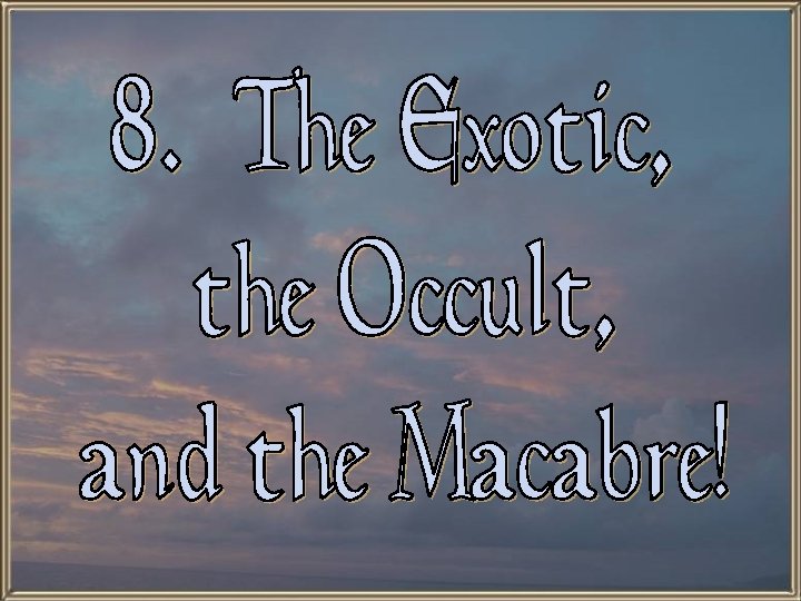 Characteristics of Romanticism Exoticism: § The sexy “other. ” § A sense of escape from reality. § A psychological/moral justification of imperialism?