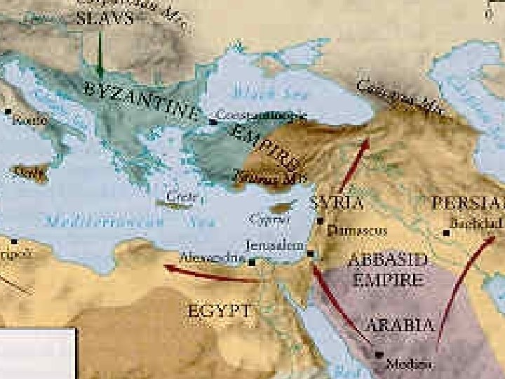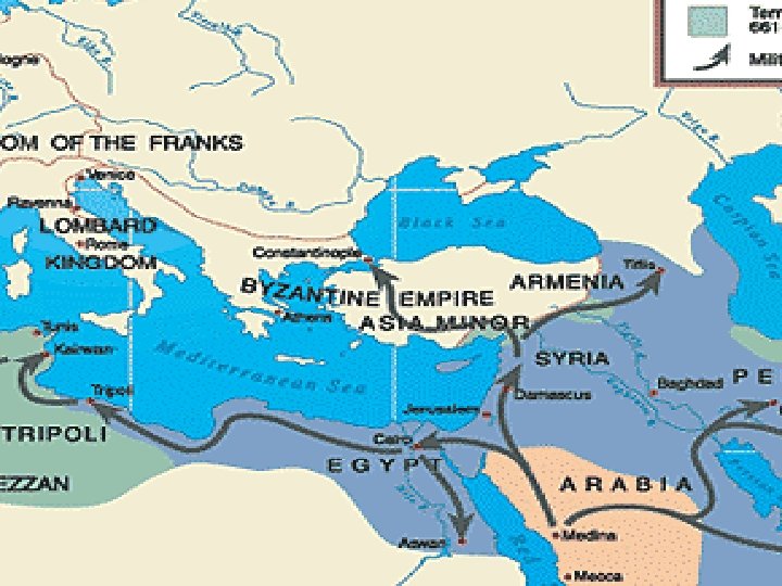 What caused the rapid expansion of Islam? 1. Religious belief that a. Islam must be reached to everyman b. Allah was on their side c. Fath, ihad and ghaza 2. Military power: a. Soldiers had stability and precision in battle b. camel and horse cavalries were faster than traditional armies. c. invention of the stirrup 3. Growing Arab population/need for more land 4. Muslim tolerance and justice: Allowing conquered people to keep their culture and belief. Many people converted to Islam