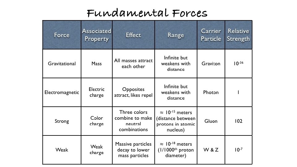 Gravity • We don’t have a quantum theory of gravity … yet! • It is believed to be mediated by a spin-2 boson called graviton. • It is a long range force. • Don’t know why it is so weak compared to the other forces.