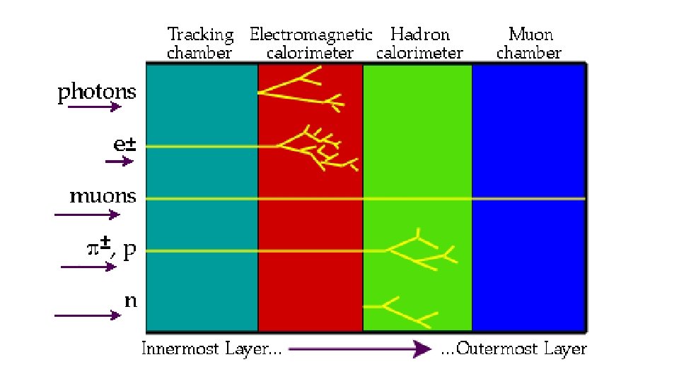 Calorimeter • Allow us to find the energies of electrons and photons. • Designed to absorb most of the particles coming from a collision forcing them to deposit their energy within the detector. • Electromagnetic calorimeters measure the energy of electrons and photons. • Hadronic calorimeters sample energy from hadrons. • Calorimeters can stop most known particles except muons and neutrinos.