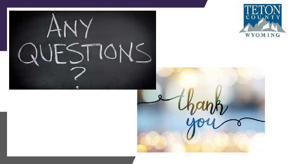 Teton County Public Works BUILD Grant • In the process of consultant selection for grant administration and management and professional services for most BUILD grant project components, including preliminary and final design, NEPA/environmental review, cost estimating, procurement and construction management. • The BUILD grant team hopes to have a project kick-off meeting with the Federal Transit Administration soon and is excited to get these great projects off the ground. Water Quality Efforts • Teton County is working with Protect Our Water Jackson Hole and the Teton Conservation District to hire a consultant for a comprehensive water quality planning effort, including wastewater management and other human-related impacts to surface and groundwater. • Public Works staff is proposing in the upcoming FY 2022 a new full time employment position – General Project Manager – to work on water-quality and other public works-related projects and programs.