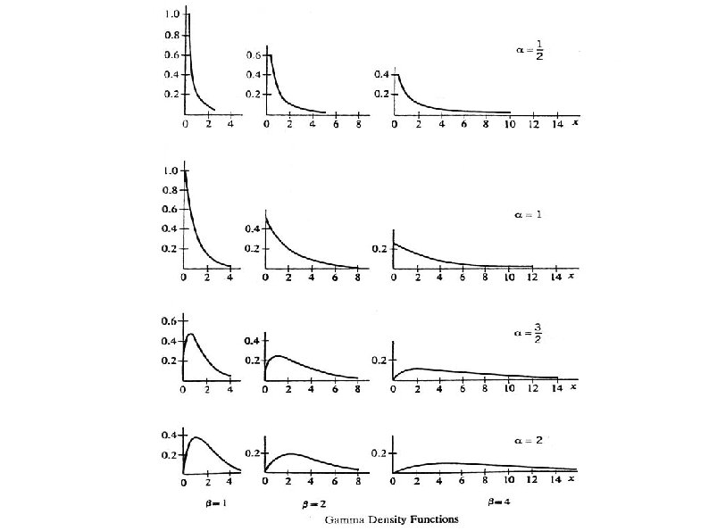Gamma distribution It has two parameters: a and b, controlling shape and size, respectively: small a: high asymmetry; a = 1 gives the exponential distribution; Large a approximates the normal. The parameters are related to the mean m and standard deviation s by m=ab s 2=ab 2